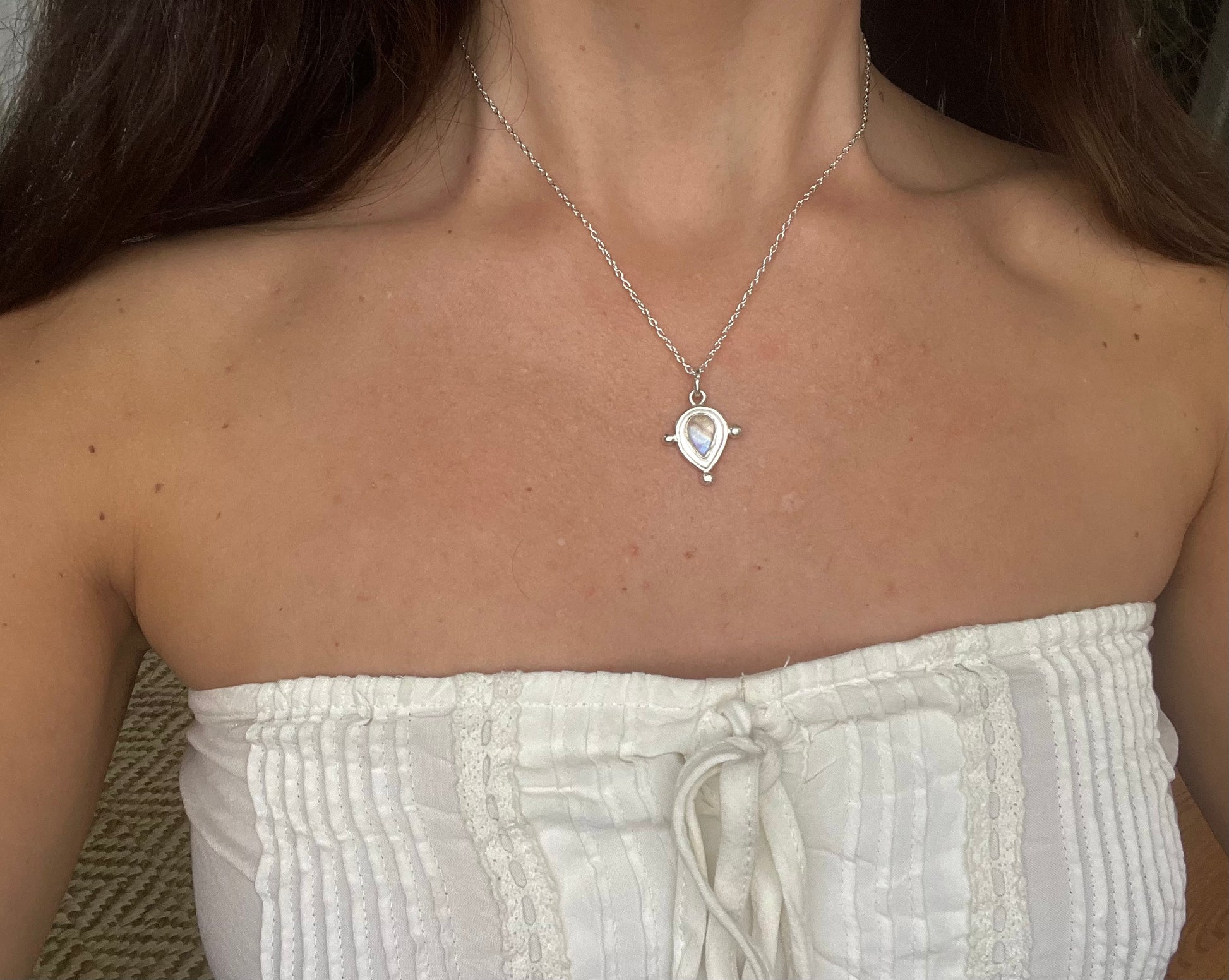 Handmade .925 Sterling Silver pendant with Moonstone, open back to allow light to shine through the stone
