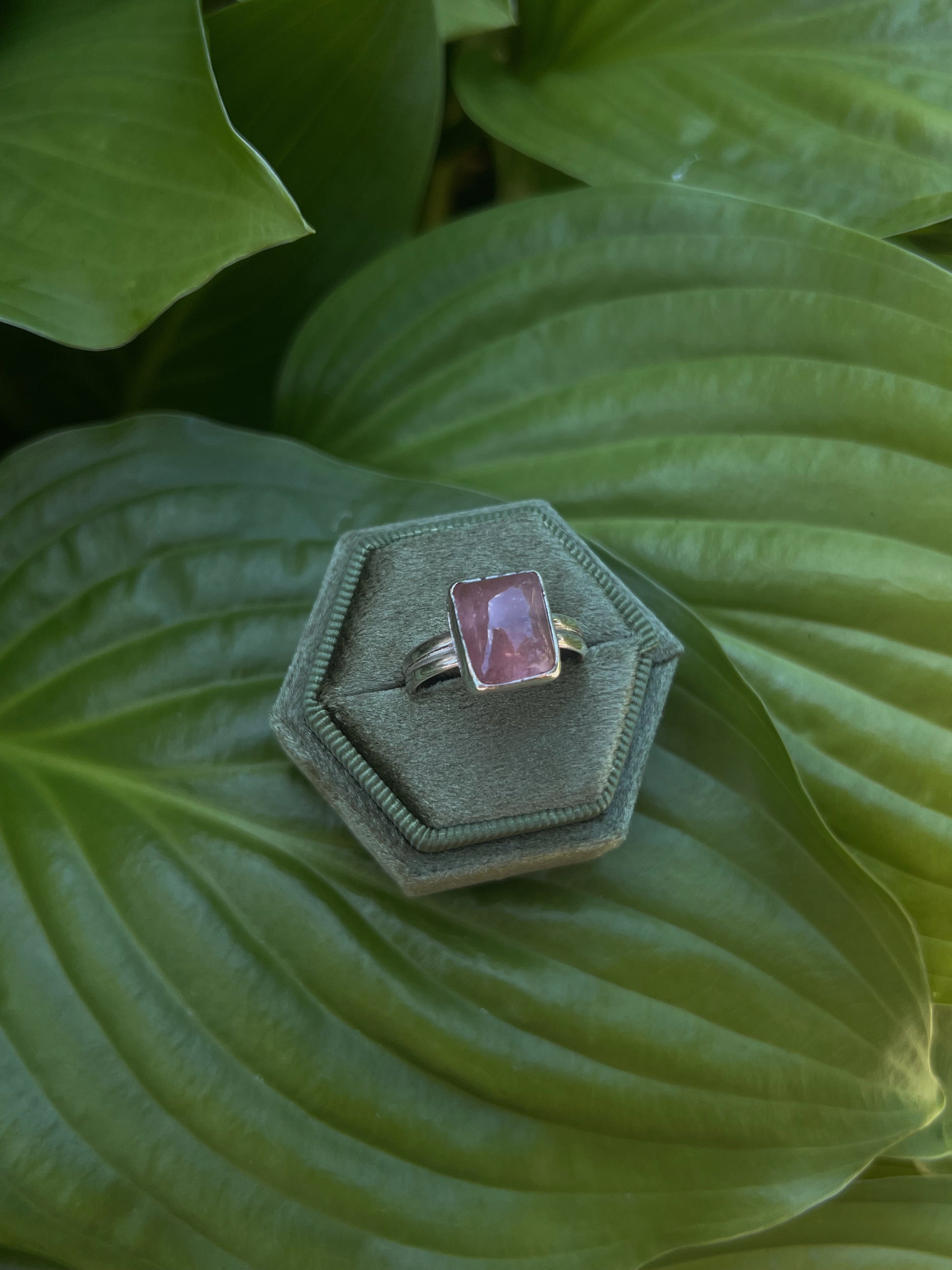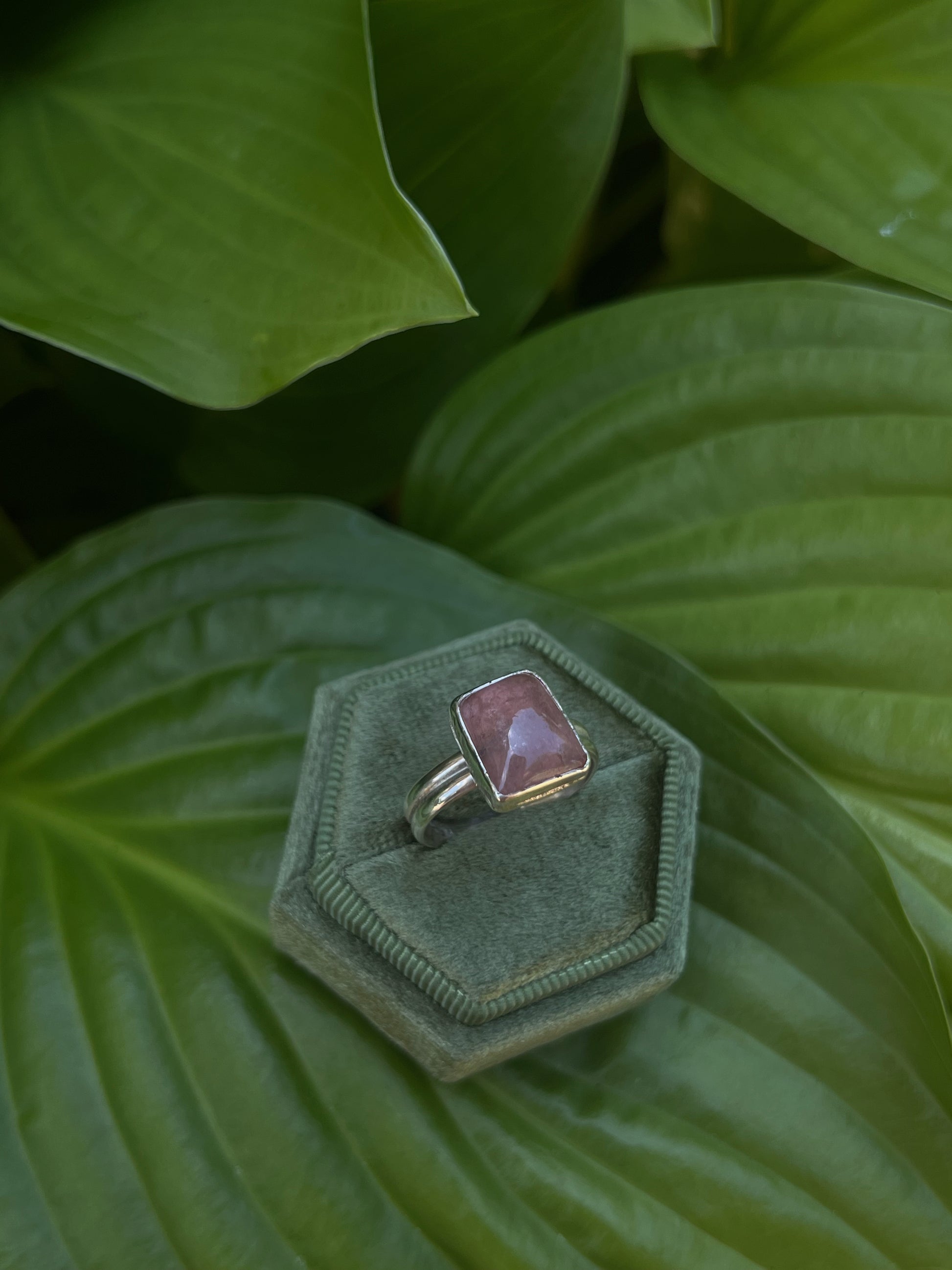 Double banded ring with Pink Watermelon Tourmaline Stone